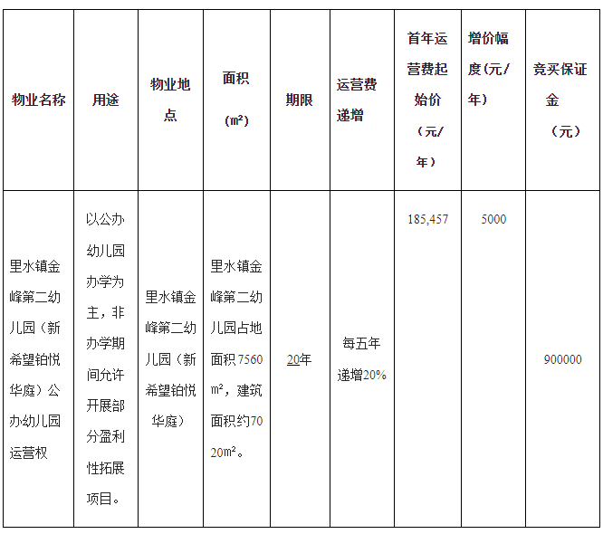 南海里水镇金峰第二幼儿园(新希望铂悦华庭)公办幼儿园运营权项目