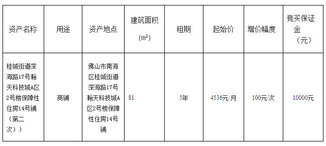 佛山市顺德区容桂街道红旗社区居委会红旗中路77号之一租赁权竞投