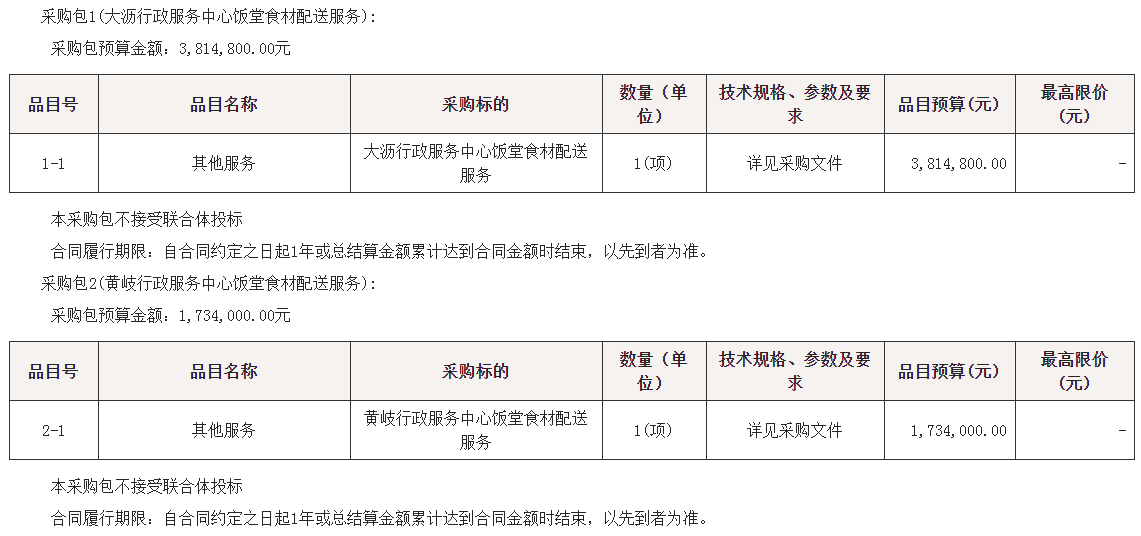 南海大沥镇大沥、黄岐行政服务中心饭堂食材配送服务招标公告