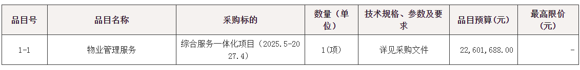 项目名称:综合服务一体化项目(2025.5-2027.4)