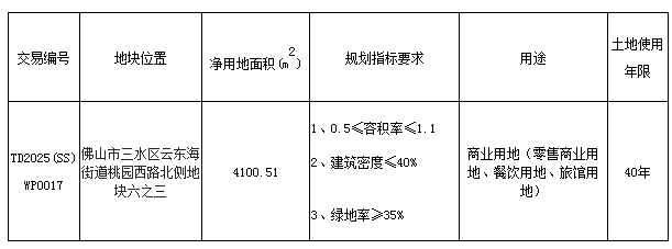 五、有意参与竞买者可于2025年3月28日后登录网上交易系统下载TD2025(SS)WP0017地块的《佛山市三水区国有建设用地使用权网上拍卖出让文件》。