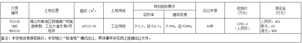 八、自本次公告起至网上挂牌截止期间,如有关于本宗地竞买文件的修改、澄清、说明等将通过网上交易系统以及佛山市南海区人民政府网发布,请有意参与竞买者密切留意。其它未尽事宜,详见本宗地的网上挂牌出让文件。