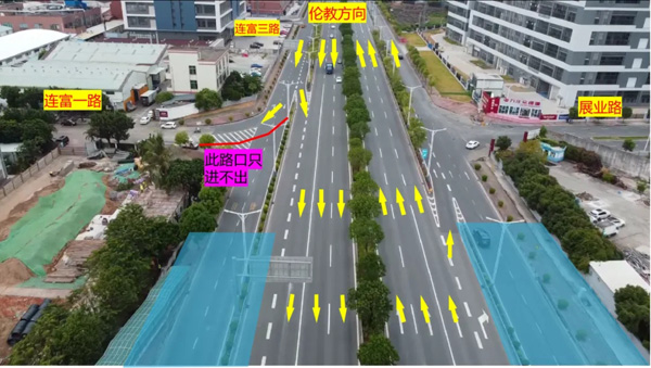 管制措施:围蔽伦桂路辅道(安利特大桥至展业路段)进行辅道改造及桥梁拼宽工程施工,伦桂路主道保持双向通行。