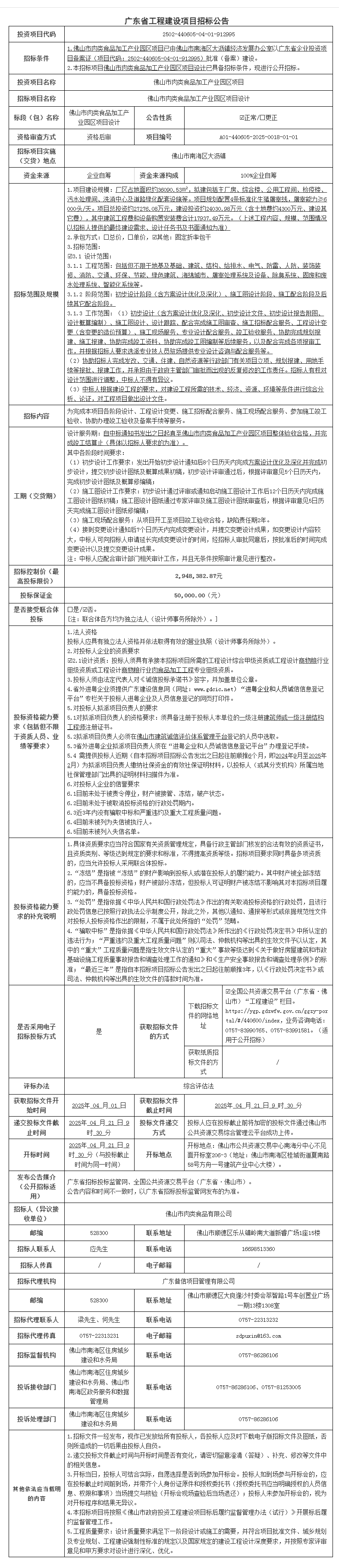 概述:佛山市肉类食品加工产业园区项目已由佛山市南海区大沥镇经济发展办公室以广东省企业投资项目备案证(项目代码:2502-440605-04-01-912995)批准......