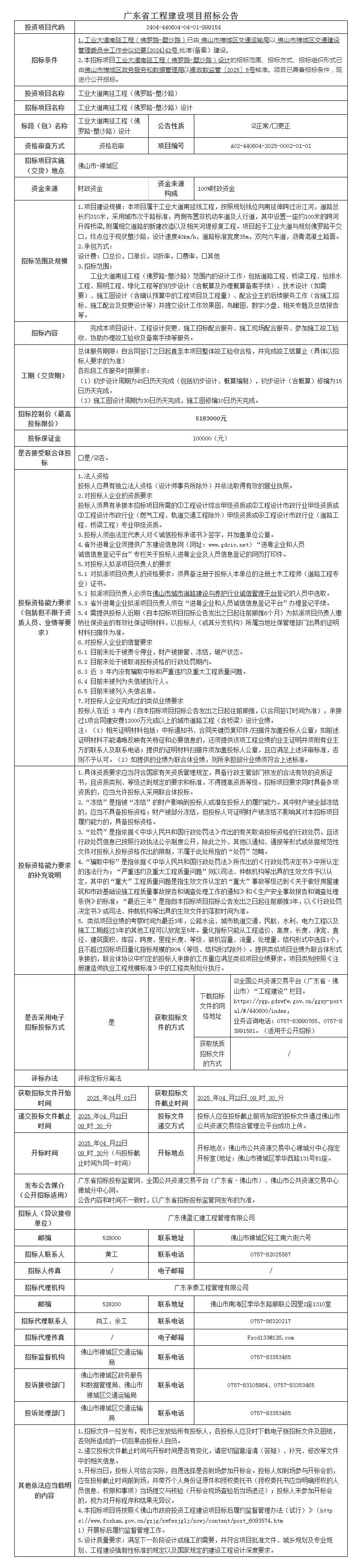 佛山水都饮料食品产业园扩展区基础设施建设项目(一期)-B标监理招标公告