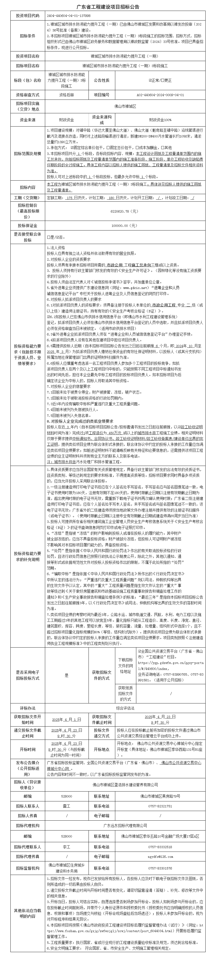 禅城区城市排水防涝能力提升工程(一期)3标段监理招标公告
