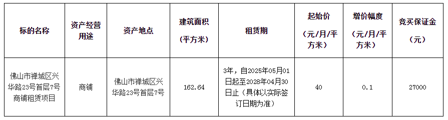 3.产权证照情况:有产权证照(竞买人应充分考虑其风险,一经存入竞买保证金即表示承认、接受本项目的现状,愿意按约定支付租赁价款和遵守租赁合同的约定)。