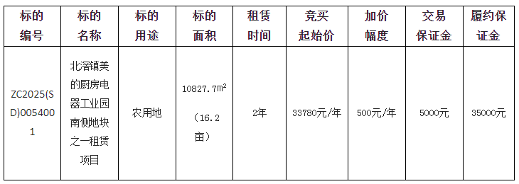 佛山市顺德区北滘镇土地发展中心采用网上竞价方式出租位于北滘镇美的厨房电器工业园南侧的使用权,欢迎符合资格的竞买人参与竞价。