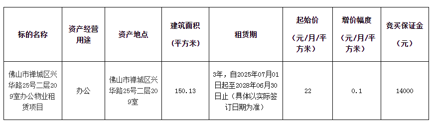 佛山市禅城区张槎一路115号二座二幢701室之一、702室之一、之二、之四办公物业租赁项目