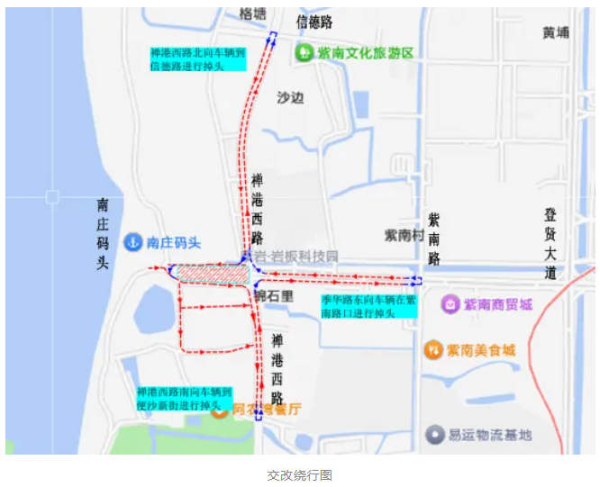 禅港西路现状南、北向掉头路口,均需前往下一个红绿灯路口掉头,南庄码头往东直行、左转方向车辆,可通过右转进入禅港西路掉头实现转向。感谢广大市民对季华路西延线项目工程建设的理解、支持和配合,不便之处敬请谅解。