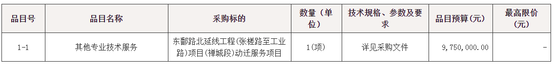 项目名称:东鄱路北延线工程(张槎路至工业路)项目(禅城段)动迁服务项目