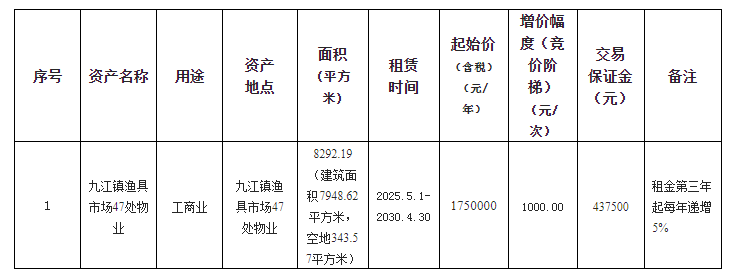 4.产权证照情况:有土地证照(竞买人应充分考虑其风险,一经存入竞买保证金即表示承认、接受本项目的现状,愿意按约定支付租赁价款和遵守租赁合同的约定)。
