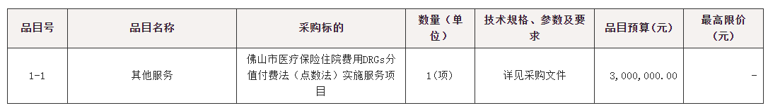 项目名称:佛山市医疗保险住院费用DRGs分值付费法(点数法)实施服务项目