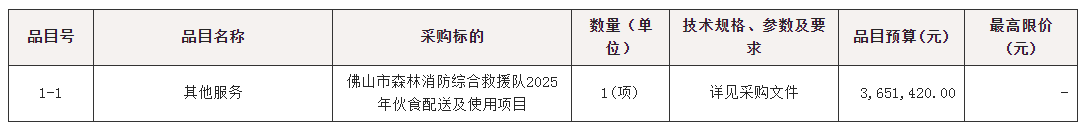佛山市森林消防综合救援队2025年伙食配送及使用项目招标公告