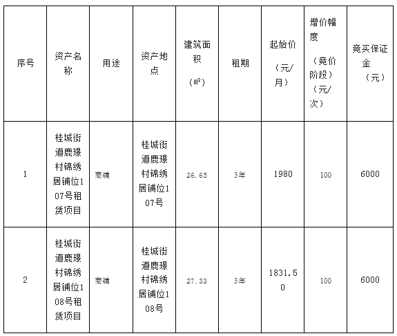南海桂城街道鹿璟村锦绣居铺位107号等一批物业租赁项目