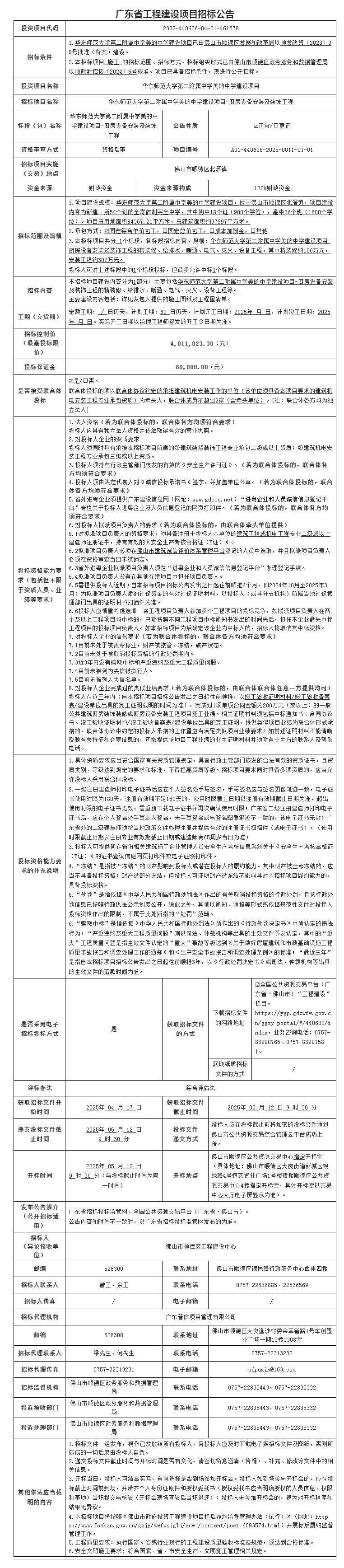 华东师范大学第二附属中学美的中学建设项目-厨房设备安装及装饰工程招标公告