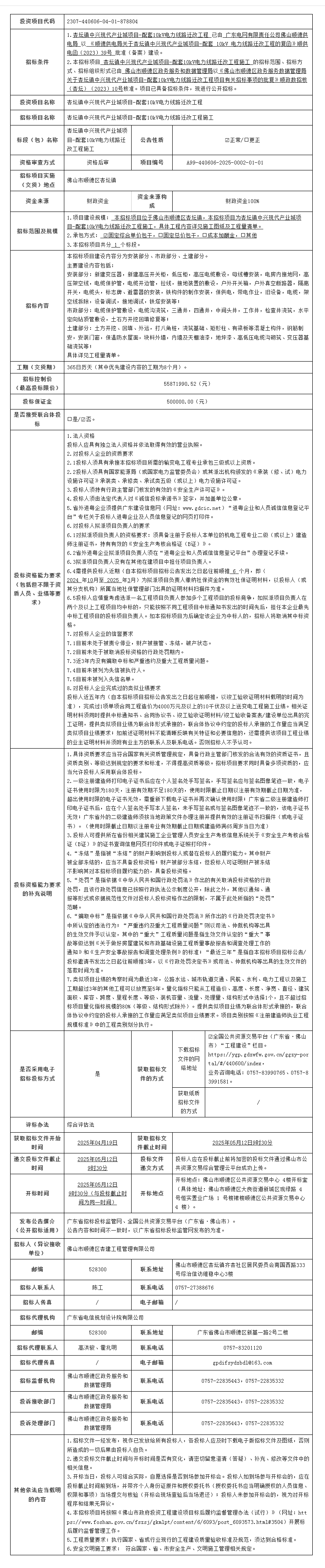 顺德杏坛镇中兴现代产业城项目-配套10kV电力线路迁改工程施工招标公告