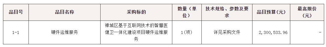采购包1(禅城区基于互联网技术的智慧医健卫一体化建设项目硬件运维服务的第1包):