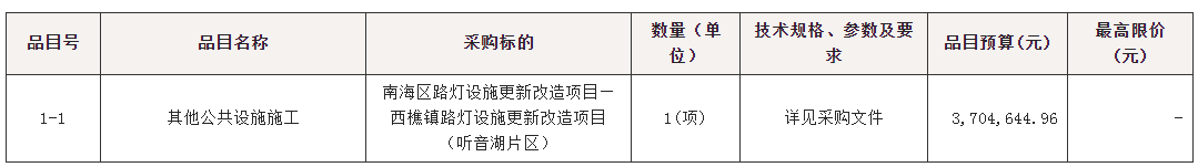采购包1(南海区路灯设施更新改造项目—西樵镇路灯设施更新改造项目(听音湖片区)):
