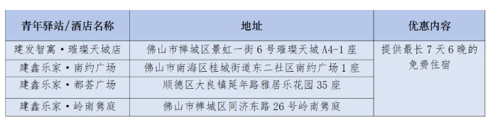 团佛山市委创新实施“青年安居计划”,在全市布局了33个青年驿站,为来佛求职面试的非佛户籍且无房高校应届毕业生,提供最长7天6晚的免费住房保障。