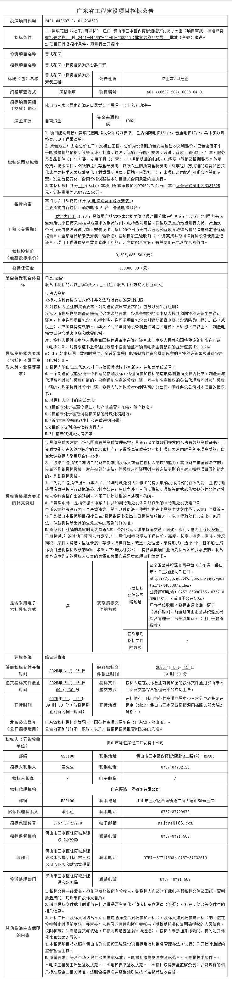 三水西南昊成花园电梯设备采购及安装工程招标公告
