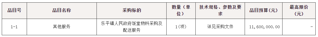 项目名称:乐平镇人民政府饭堂物料采购及配送服务