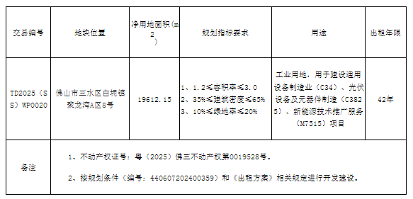 五、有意参与竞租者可于2025年4月23日后登录网上交易系统下载TD2025(SS)WP0020地块的《佛山市三水区国有划拨留用地使用权网上拍卖出租文件》。