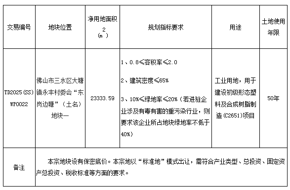 五、有意参与竞买者可于2025年4月25日后登录网上交易系统下载TD2025(SS)WP0022地块的《佛山市三水区国有建设用地使用权网上拍卖出让文件》。