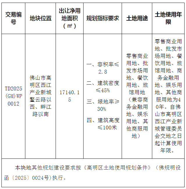本地块其他规划指标和要求按《规划条件》(编号:440607202500102)相关规定执行。