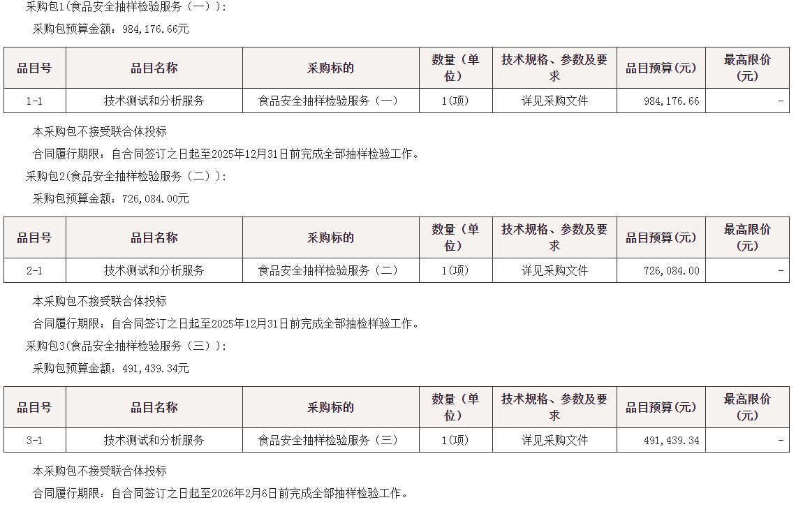项目名称:佛山市市场监督管理局2025年食品抽检服务项目