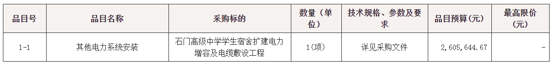 采购包1(石门高级中学学生宿舍扩建电力增容及电缆敷设工程):