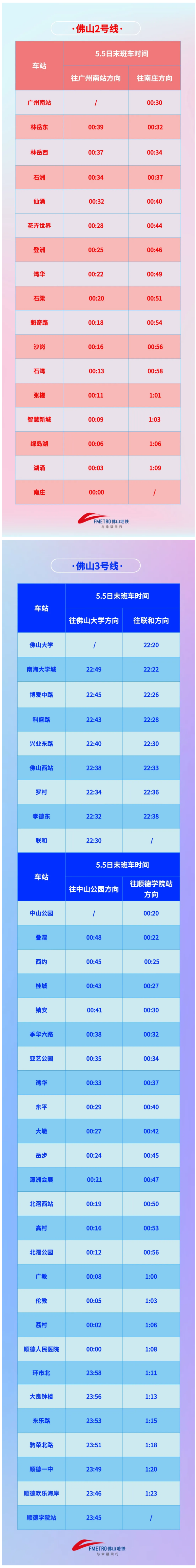 五一假期即将到来,为方便市民节假日出行,佛山地铁部分线路将延长运营服务时间,具体安排如下: