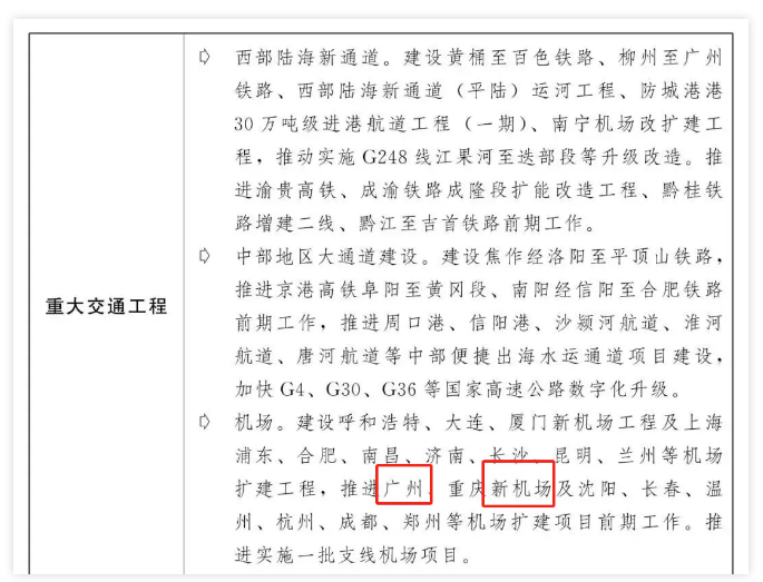另外,前段时间,珠三角枢纽(广州新)机场入选国家发改委2025年重点领域重大投资项目名单。今年,国家发改委将推进该新机场项目的前期工作。