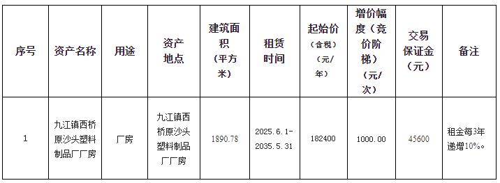 1.出租人:佛山市南海区九江镇镇有资产管理有限公司