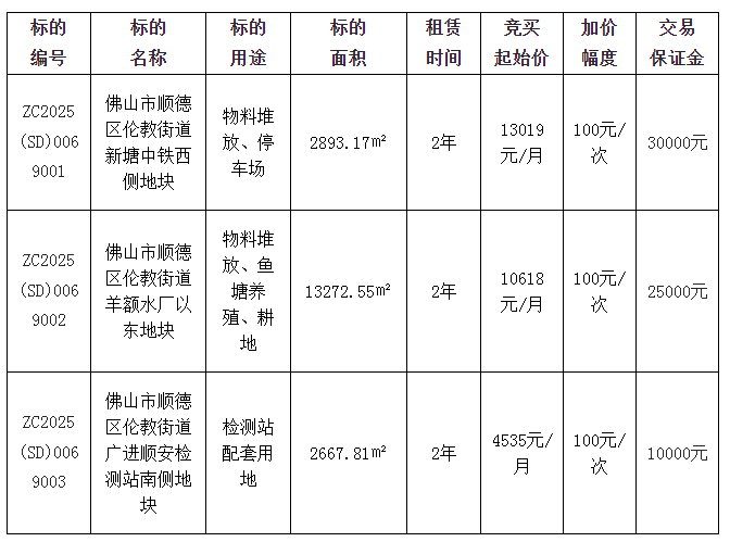 1.项目名称:佛山市顺德区伦教街道新塘中铁西侧地块等3宗地块公开招租项目