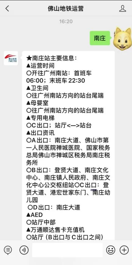 ✅直接在微信搜索“佛山地铁”或“佛山地铁运营”公众号,在对话框中输入对应站点查询。