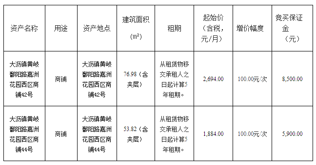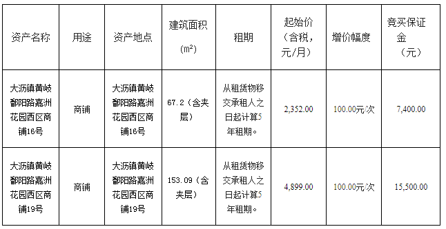 南海大沥镇黄岐鄱阳路嘉洲花园西区商铺23号等三项物业租赁公告