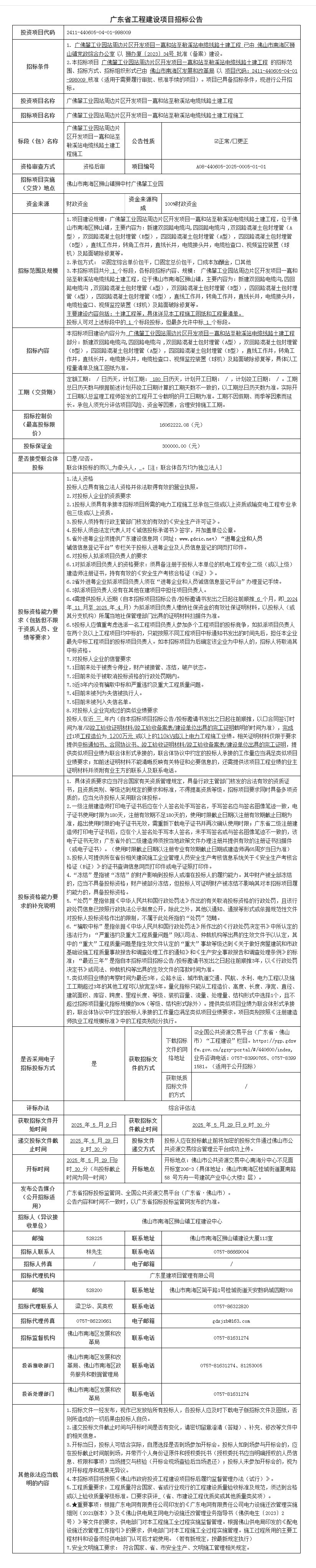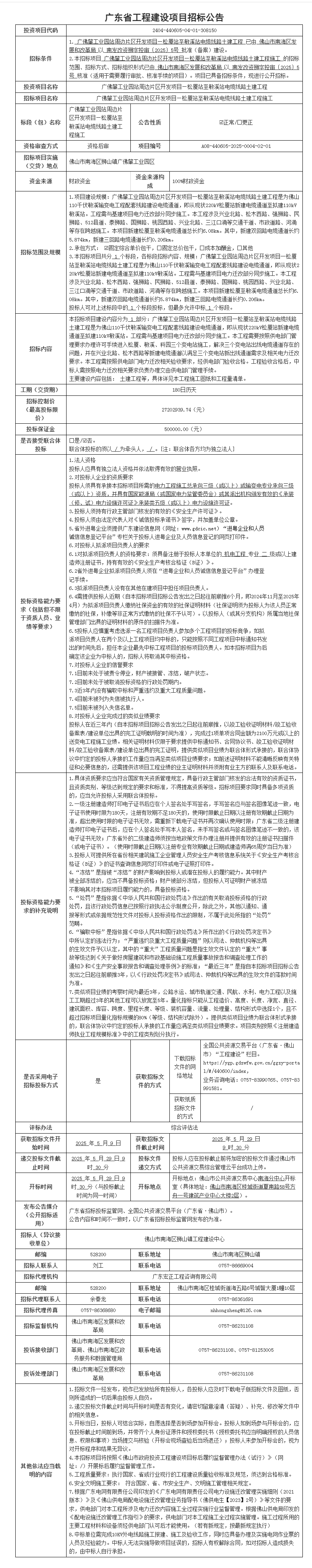 广佛肇工业园站周边片区开发项目—松厦站至敏溪站电缆线路土建工程施工招标公告