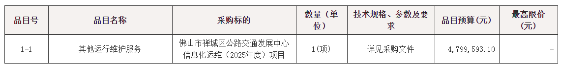佛山市禅城区公路交通发展中心信息化运维(2025年度)项目招标公告
