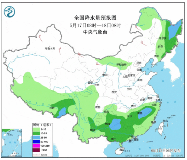 5月17日至18日(周末)多云间阴天,有雷阵雨、局部大雨。