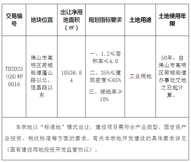五、有意参与竞买者可于2025年5月12日后登录网上交易系统下载该地块的《佛山市高明区国有建设用地使用权网上拍卖出让文件》。