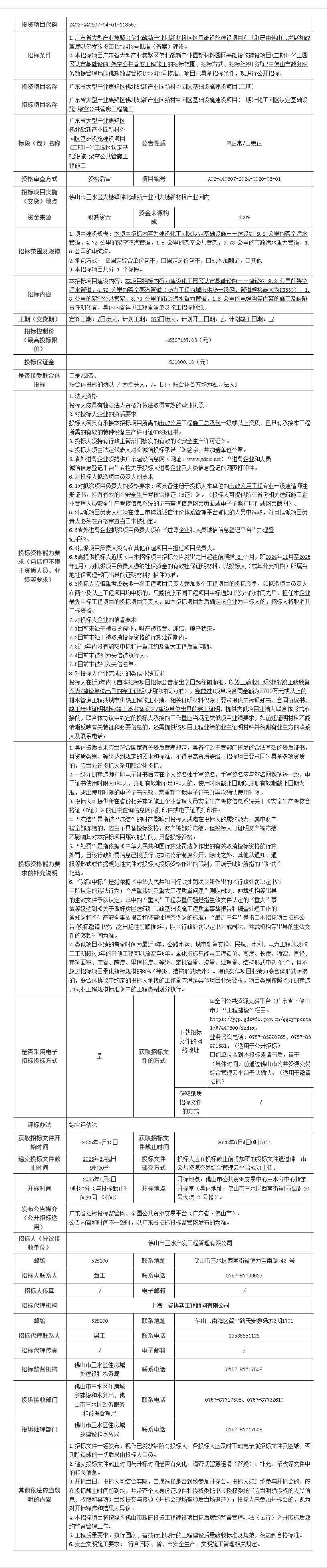 广东省大型产业集聚区佛北战新产业园新材料园区基础设施建设项目(二期)-化工园区认定基础设施-架空公共管廊工程施工招标公告