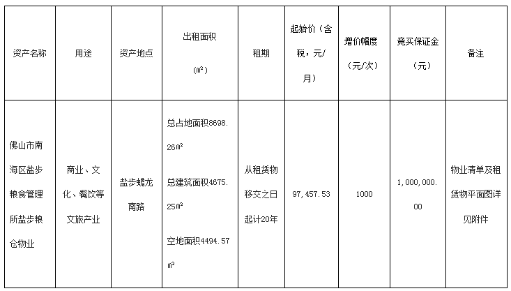 佛山市南海区大沥镇盐步粮食管理所盐步粮仓物业租赁公告