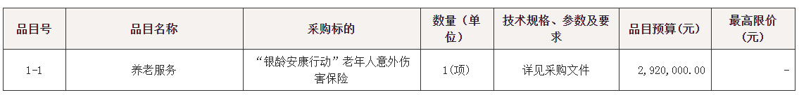 采购包1(“银龄安康行动”老年人意外伤害保险):