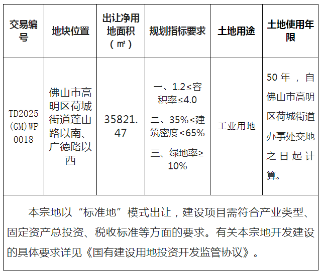 本块地其他规划建设要求按《高明区土地使用规划条件》(佛规明设函〔2025〕0039号)执行。