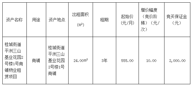 南海桂城街道平洲永安中路3号首层商铺之一物业租赁项目