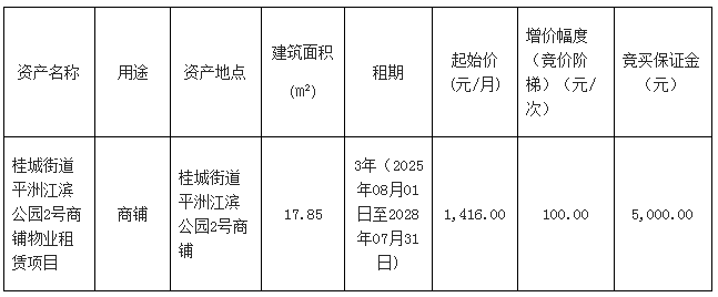 南海桂城街道平洲永安中路3号首层商铺之一物业租赁项目