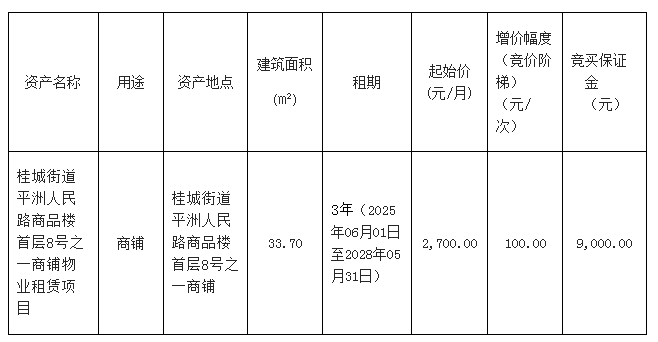2.交易保证金到账截止时间为2025年5月26日下午5:30,超过截止时间达账则不能参加竞租;
