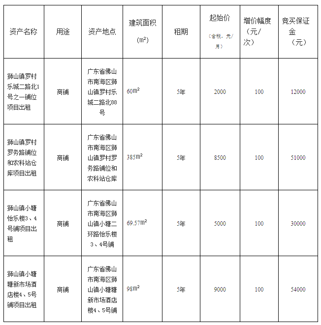 佛山市顺德区容桂街道红旗社区居委会红旗中路77号之一租赁权竞投
