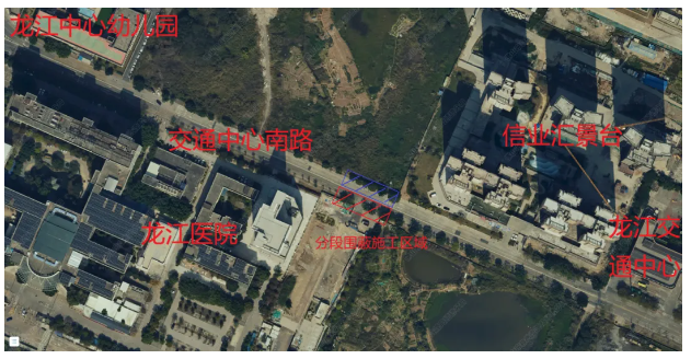 二、2025年6月26日至2025年7月26日为龙江交通中心南路北侧施工阶段,对蓝色区域范围实施围蔽施工(详见附件示意图蓝色区域),工期约一个月。
